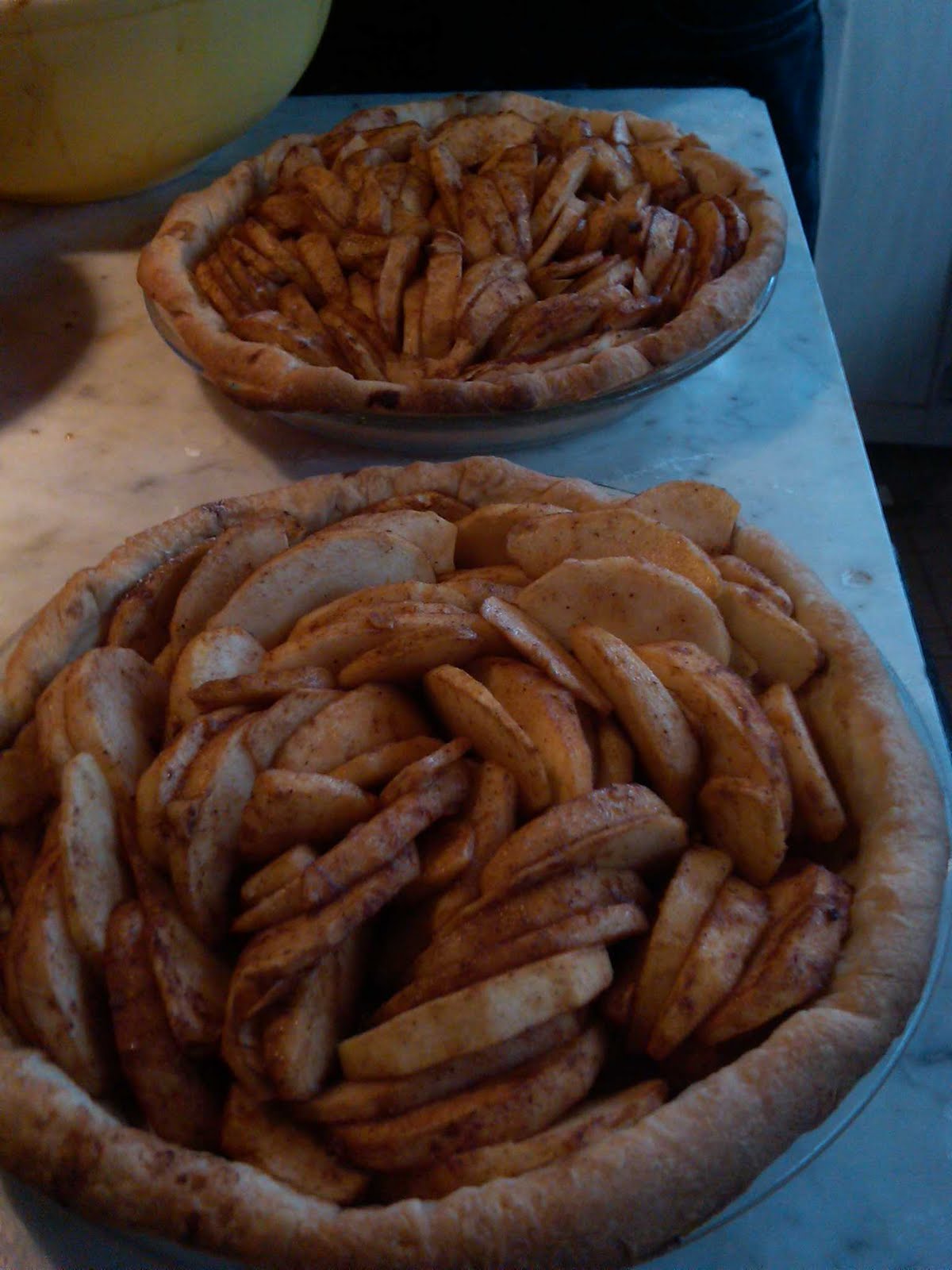 Put It All Together:Roll out dough disk on floured surface to 13-inch round. Transfer to 9-inch-diameter glass pie dish. Spoon in apple filling, trying to make it relatively level so the streusel doesn't fall all over the place. Evenly sprinkle streusel topping over apples.